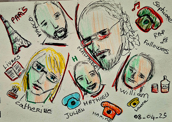 "Princesse", 102 ans, alcoolisme, appartement à Paris, bars, beurre, camping car, carte grise, Catherine Arcachon, changer de vie, changer de ville, chiens savants, chimio, concerts, déménagement, état providence, état second, Etats Unis, Europe, followers, Hôpital psy, hypertension, indépendance, internement, Julien Strasbourg, Marco Lausanne, Mathieu Montaigu, musicien, notoriété, Paris, performances, pétard, pouvoir d'achat, psychotiques, rapp, rencontre fille, Rires et chansons, sandwich, se laisser aller, Sophiane Narbonne, Trump, Urgences, vivre à Paris, William Perpignan